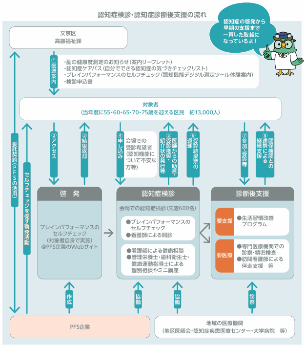 大規模な認知症検診事業として立ち上げる場合は、準備期間として数か月単位が必要となるため、実施希望の前年度からご相談いただくとスムーズです。