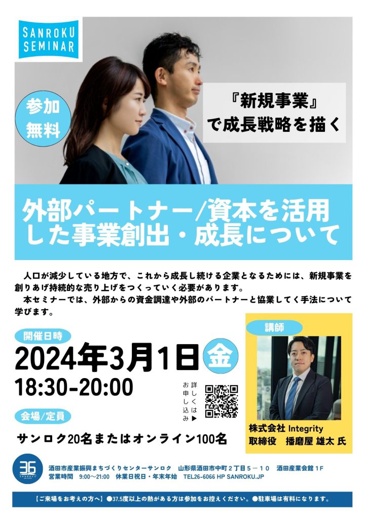 「人口が減少している地方で、これから成長し続ける企業となるために、新規事業を創出し、持続的な売上を作っていきたい」という想いを抱えていた酒田市から相談を受け、中堅・スタートアップ企業向けにセミナーを開催。