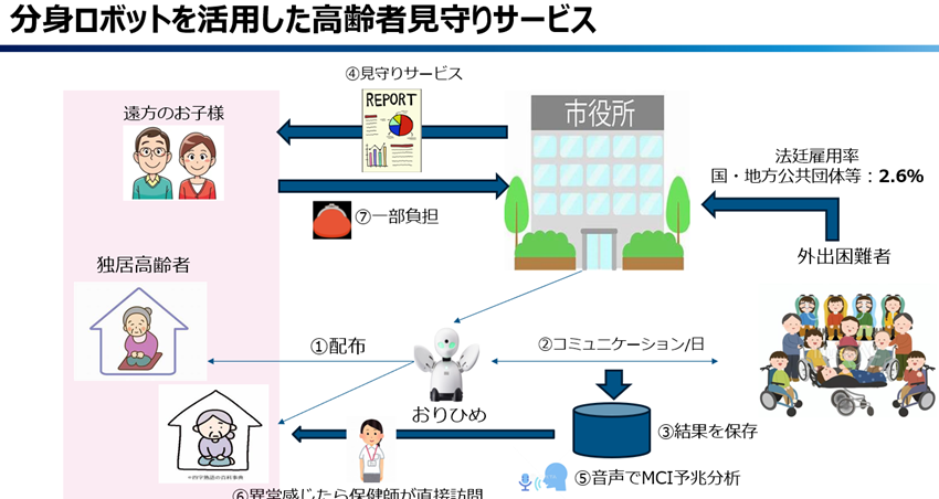 このコミュニケーションを担うのは、障害等の理由で外で働くことができない外出困難者の方たちです。高齢者福祉施策であると同時に、障害者雇用率向上に貢献し、障害者の自立を後押しすることで自治体の福祉施策を強化できる「三方良し」の施策でもあります。